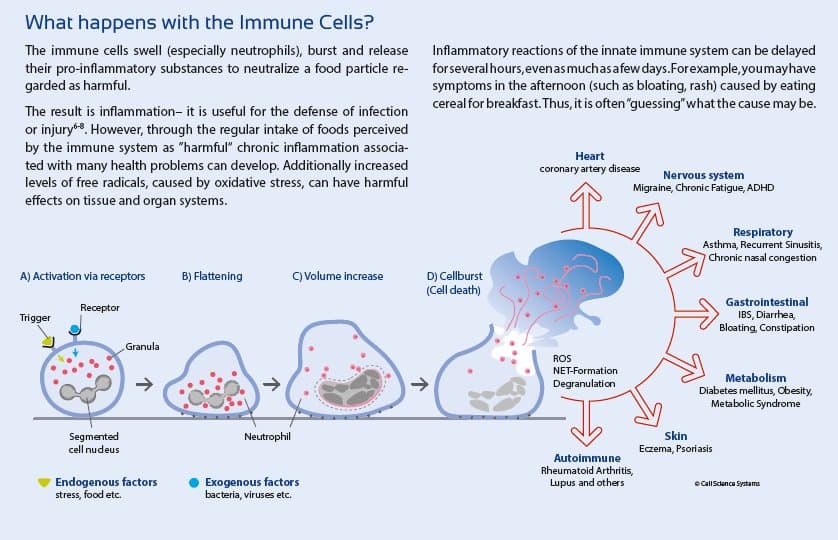 Take a look at the image below to understand what actually happens to the cell when it is exposed to a certain food or chemical it is intolerant/sensitive to: